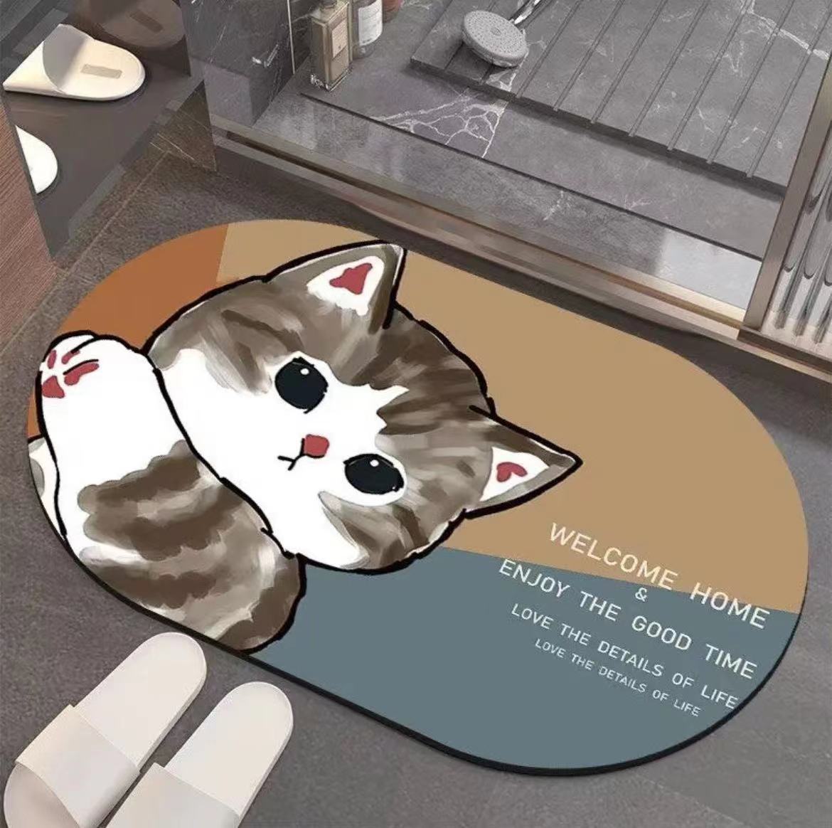 Grosir lantai lumpur diatom kamar mandi kucing kartun kreatif karpet penyerap pintu kamar mandi anti-selip pabrik