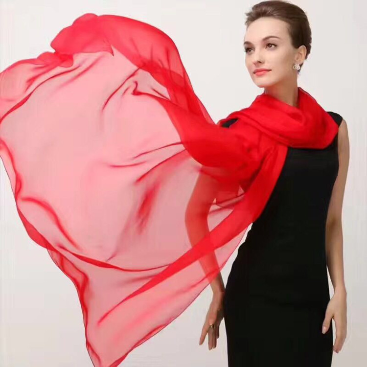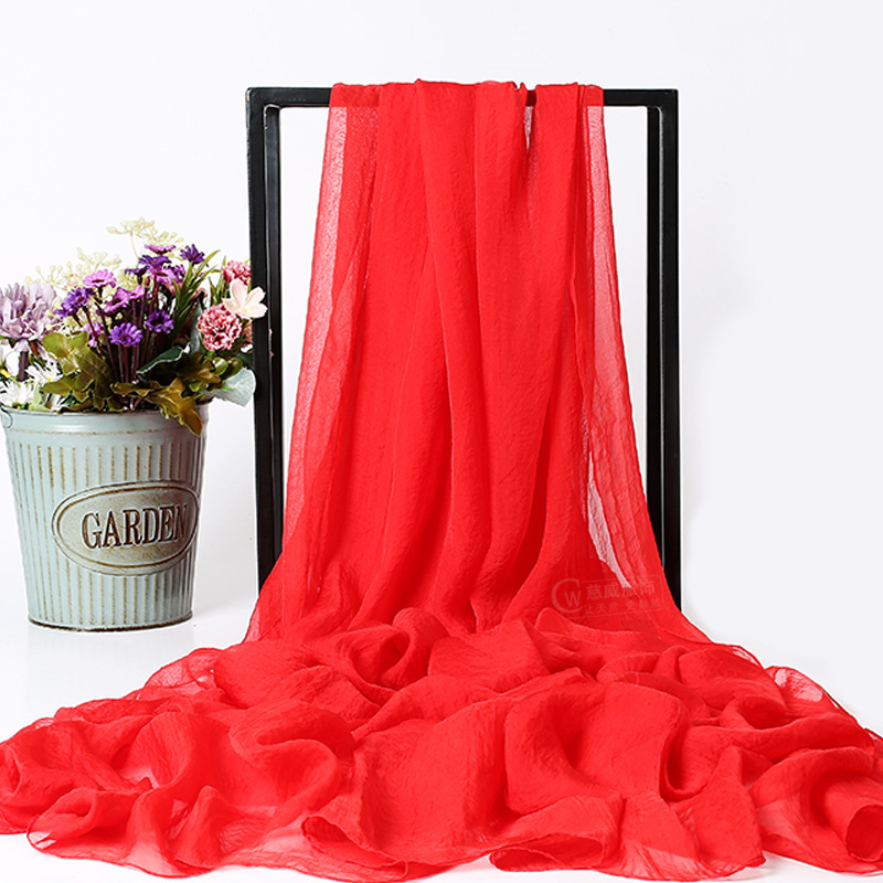 Syal georgette sifon warna murni syal merah festival grosir syal kinerja wanita merah besar tipis hadiah kecil