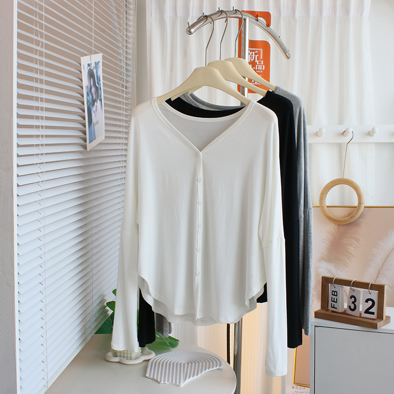 Rasa tingkat tinggi ~ Kardigan Lengan Panjang Modal Tipis Pakaian Pelindung Terik Matahari Jaket Selendang Pakaian Tari Longgar Wanita Kaos Oblong Yoga Atasan