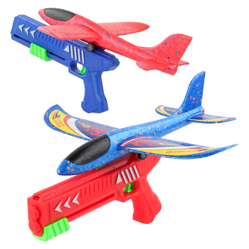 Mainan olahraga anak-anak, pesawat lempar tangan ketapel satu klik lembut elastis busa EPP anak laki-laki dan perempuan