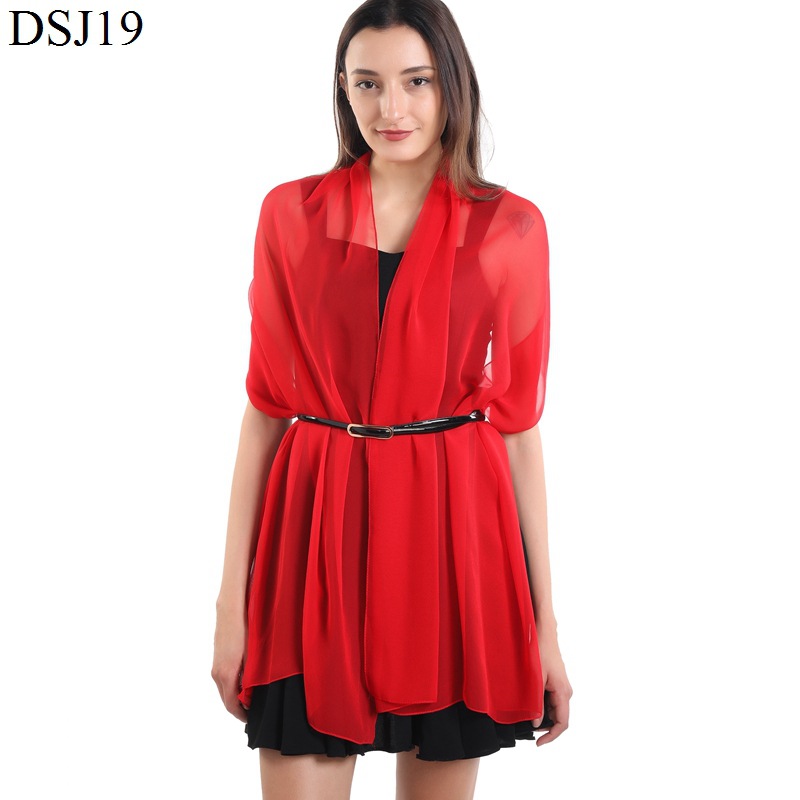 Syal georgette warna murni Eropa dan Amerika syal menari tubuh wanita syal sutra catwalk selendang Amazon