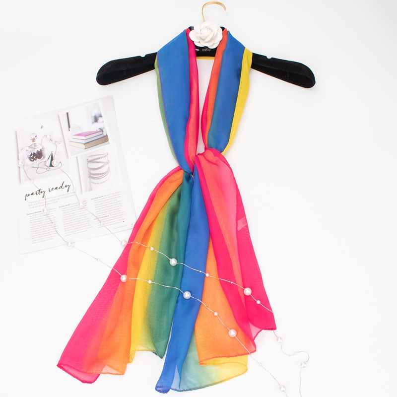 Syal sutra gradien warna pelangi Syal chiffon wanita syal tabir surya lembut selendang tari catwalk syal sutra grosir