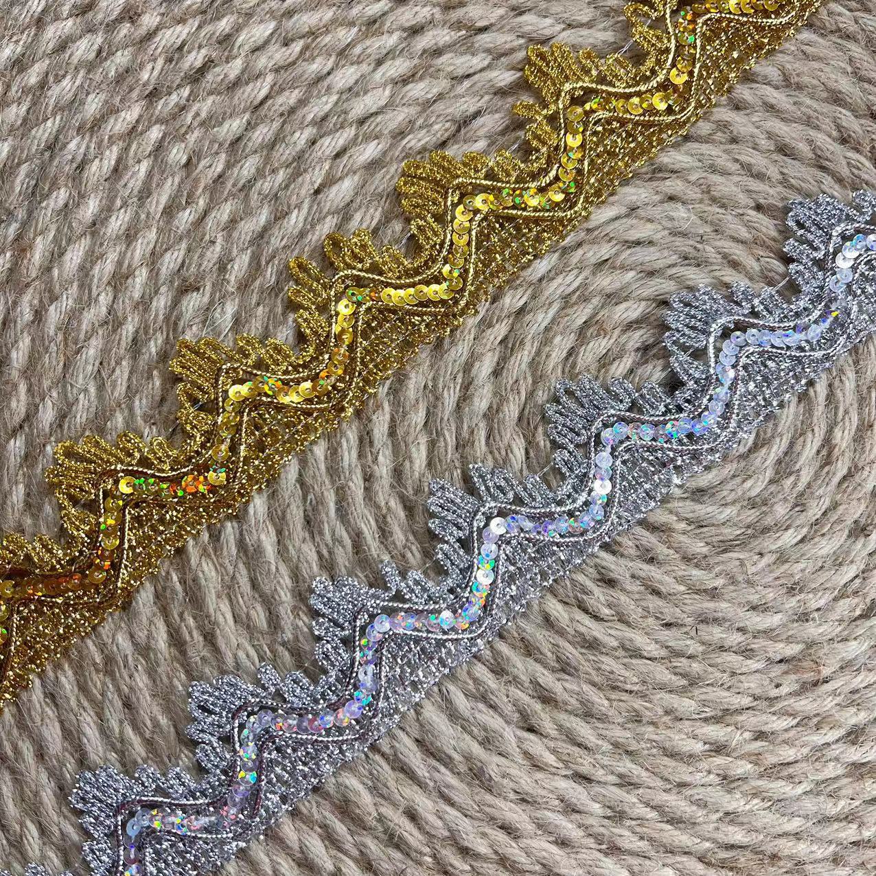 Gaya etnik 3.5CM lebar renda emas tiga payet pita renda buatan tangan tari pakaian Aksesori kerajinan