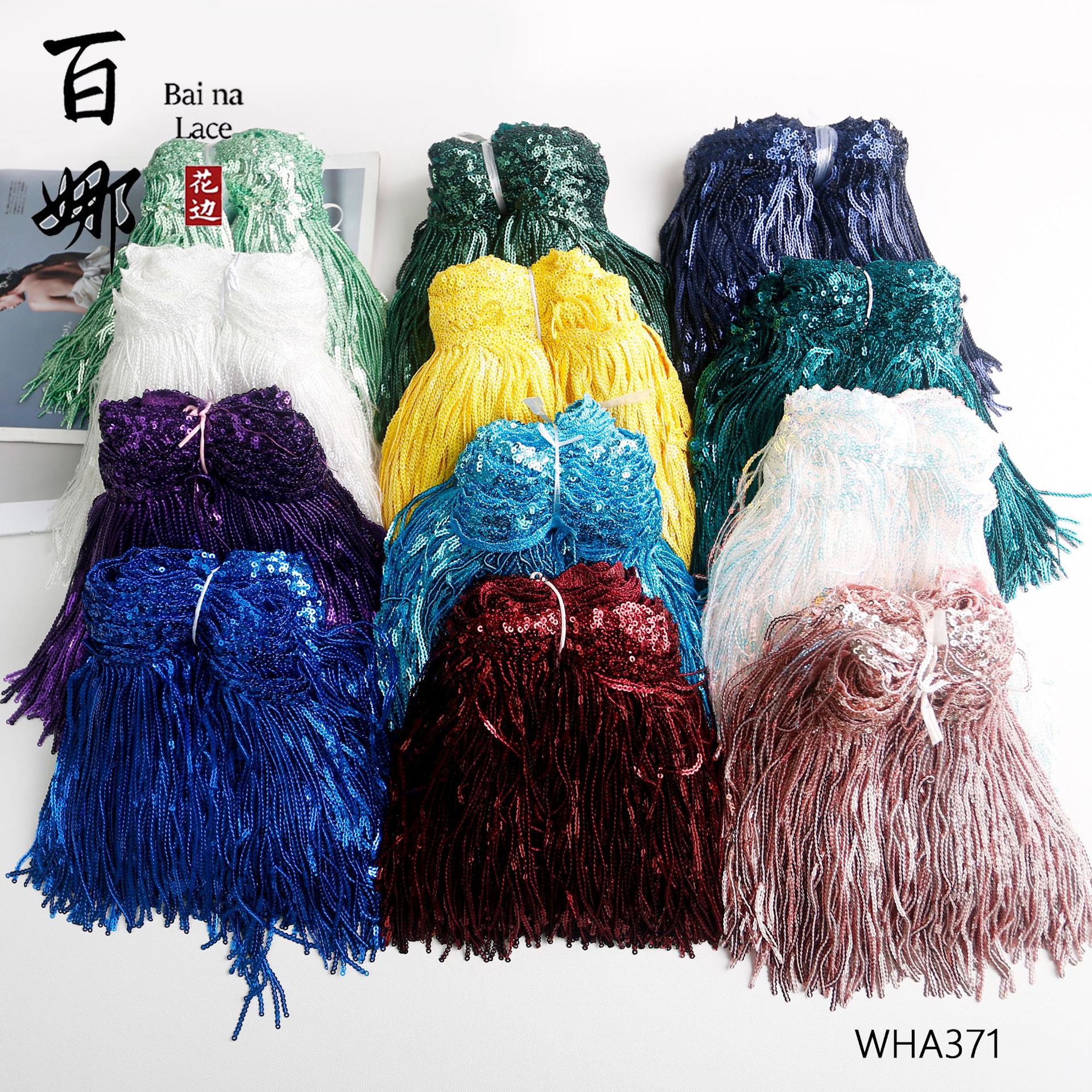 Aksesori pakaian tari Latin vertikal renda pinggiran sapu poliester 15cm Aksesori tirai seni kekayaan warna renda rumbai