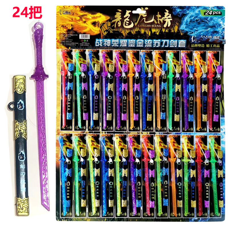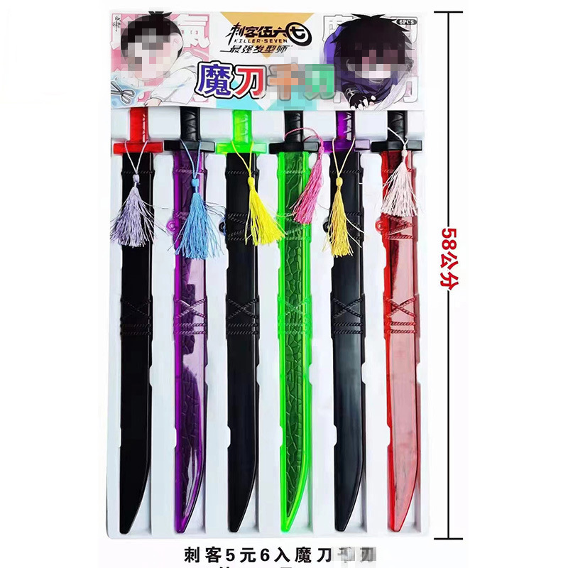 6-piece pisau mainan berwarna Assassin Wu Liuqi pisau ajaib anak-anak plastik scabbard rumbai 58cm kantin piring gantung