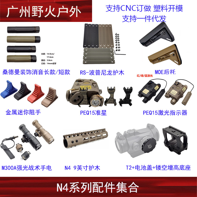 [N4 seri Aksesoris] N4 kayu logam perlindungan Sandman silencer mini hand blocking MOE belakang dukungan PEQ pop perlindungan kayu