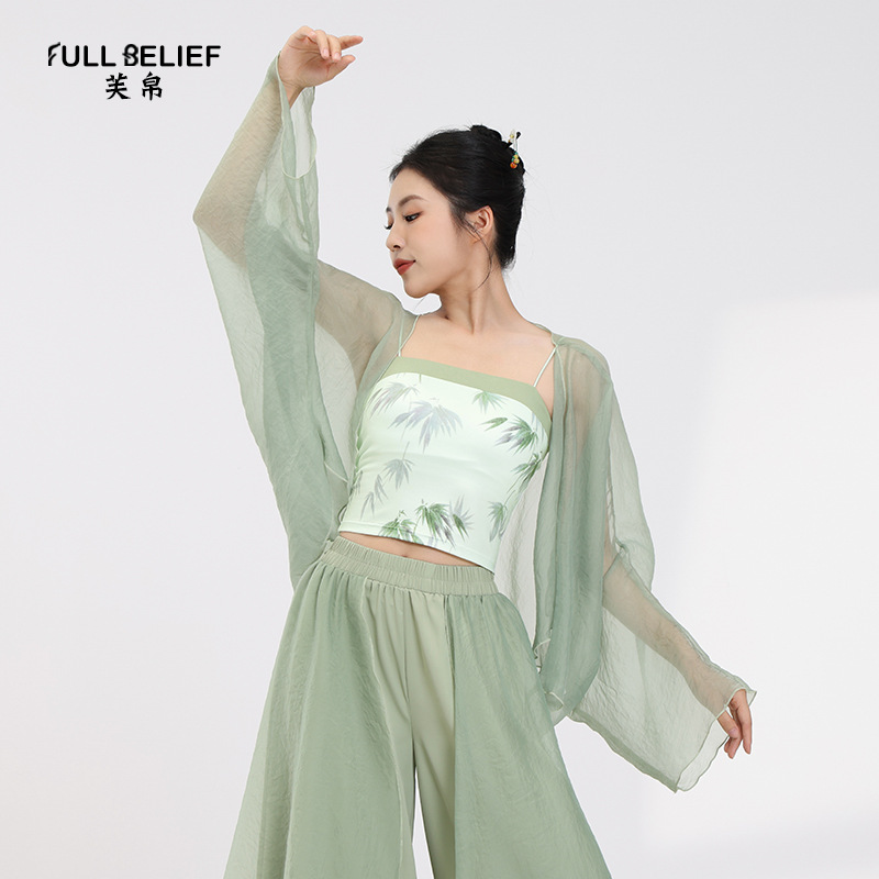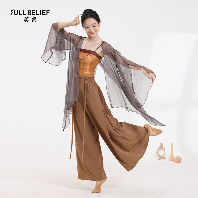 FUQI pakaian dansa klasik gaya China, pakaian pertunjukan, kardigan elegan atasan tubuh wanita, pakaian latihan, syal, pakaian kasa