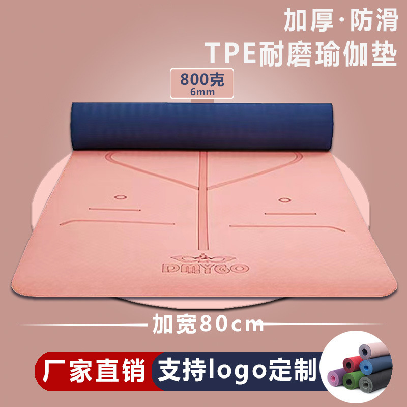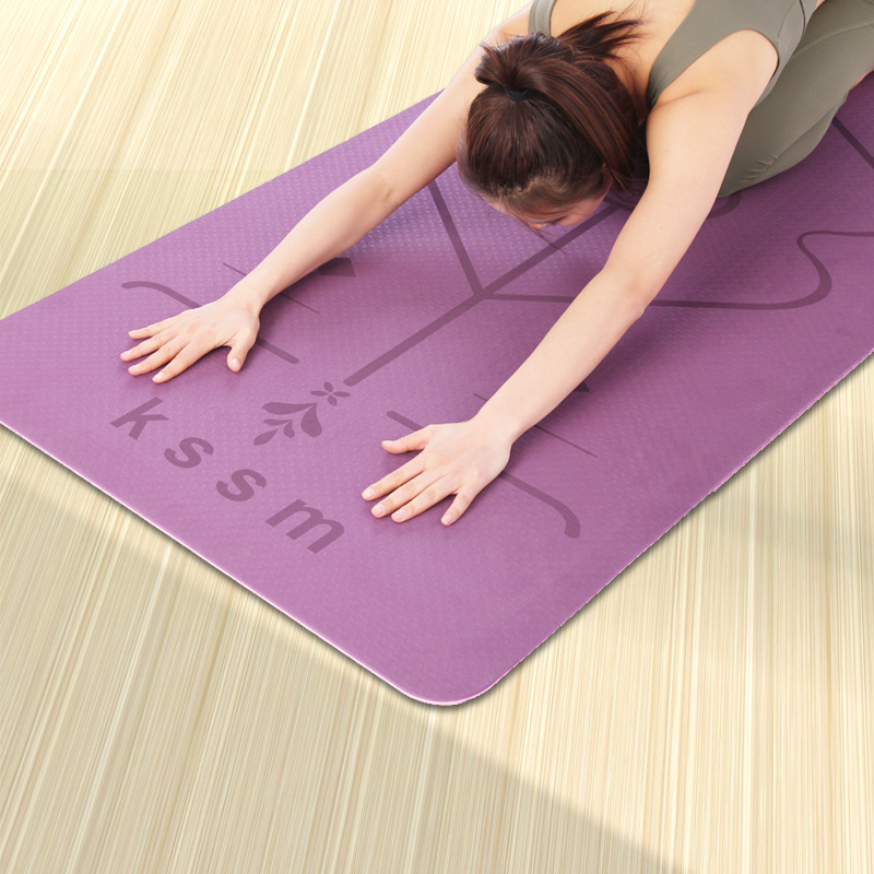 Tikar yoga karet pu kebugaran, tikar tikar yoga tebal ekstra besar cetak logo posisi garis tiran, tikar olahraga, tikar menari rumah