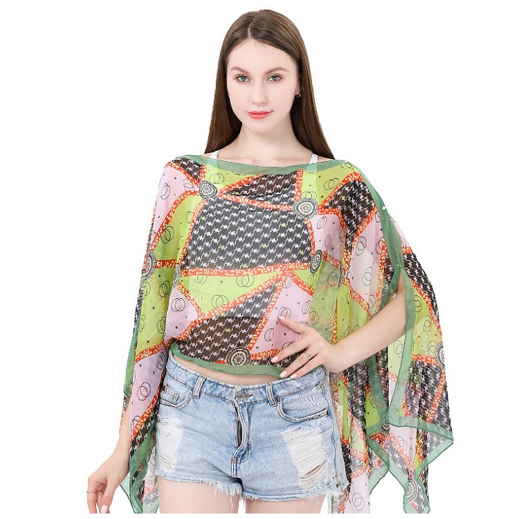 Syal tabir surya serbaguna musim panas handuk tari lembut Georgette baru syal selendang ultra tipis temperamen bunga titik grosir