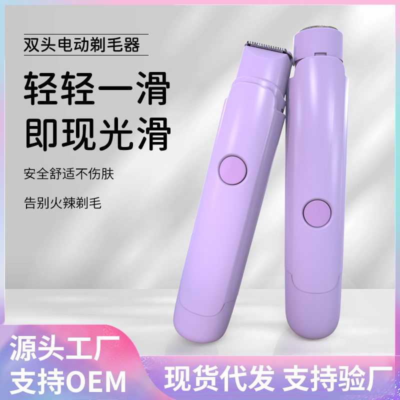 Pencukur lintas batas, alat cukur bagian pribadi wanita, pengikis rambut listrik berkepala ganda, pemangkas multifungsi