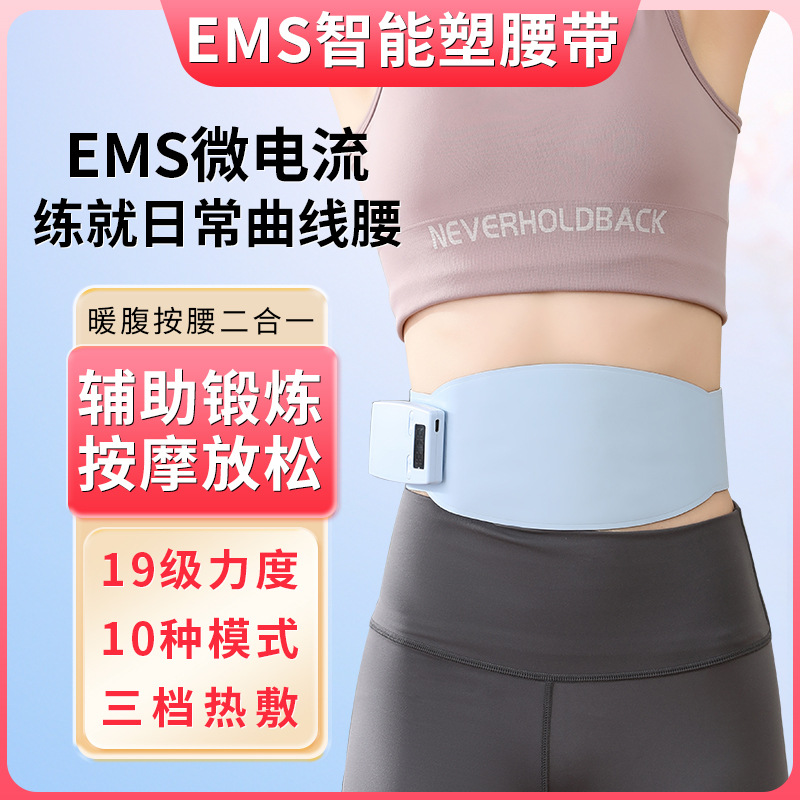 Sabuk perut pembentuk tubuh kompres panas, peralatan pijat perut pintar arus mikro EMS, alat fitness pengurang lemak