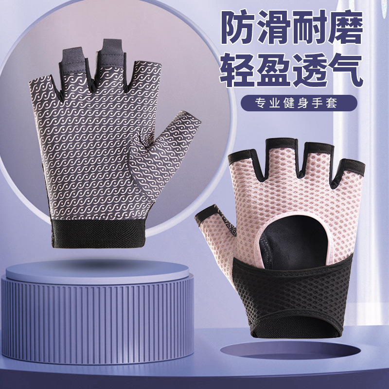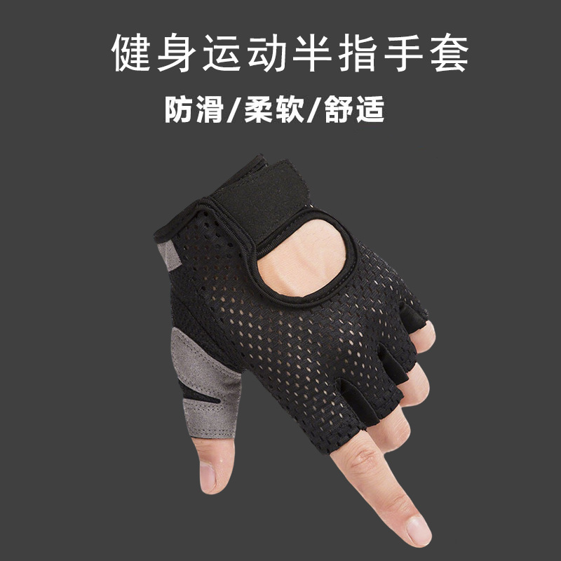 Sarung Tangan Kebugaran Sepeda Latihan Kekuatan Tipis Musim Panas Setengah Jari Pria dan Wanita Sepeda Olahraga Bel Kettlebell Besi Bernapas Anti Licin Bersepeda