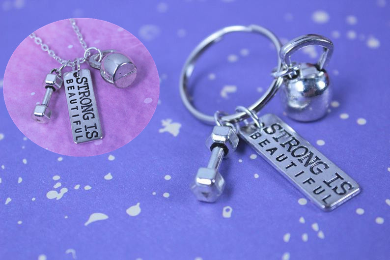 Kuat indah barbell dumbbell kettlebell 3d kebugaran gantungan kunci gym gantungan kunci