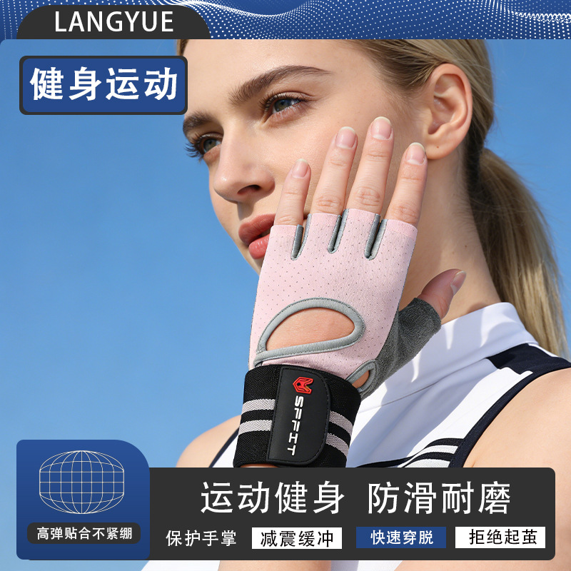 Sarung Tangan Anti Licin Kebugaran Sarung Tangan Wanita Bersepeda Setengah Jari Sepeda Gunung Dumbbell Halus
