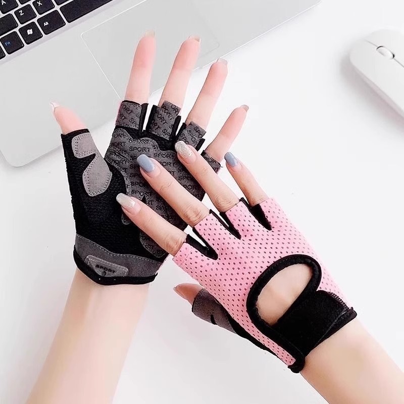 Sarung Tangan Bersepeda Setengah Jari Wanita Sepeda Olahraga Kebugaran Luar Ruangan Pria Kettlebell Yoga Anti Meluncur Kepompong Anti Licin Tahan Aus