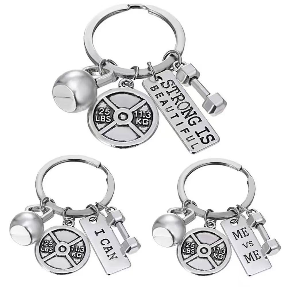 Perhiasan Lintas Batas Eropa dan Amerika Hadiah Gym Liontin Kecil Kettlebell Barbel Gantungan Kunci Kebugaran Dumbbell
