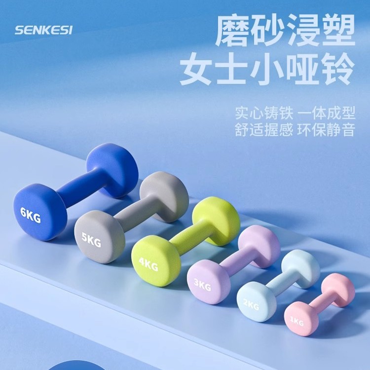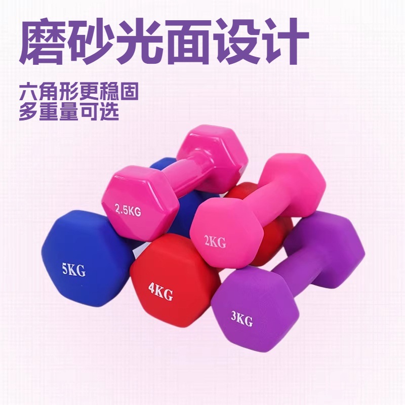 Pabrik Penjualan Langsung Dumbbell Plastik Celupkan Lintas Batas Yoga Kebugaran Kepala Datar Dumbbell Kecil Matte Peralatan Olahraga Latihan Rumah Tangga Wanita