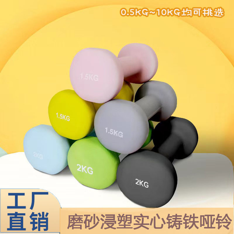 Dumbbell besi cor berlapis plastik untuk pria dan wanita, peralatan kebugaran rumahan, dumbbell ukuran kecil untuk latihan lengan dan yoga.