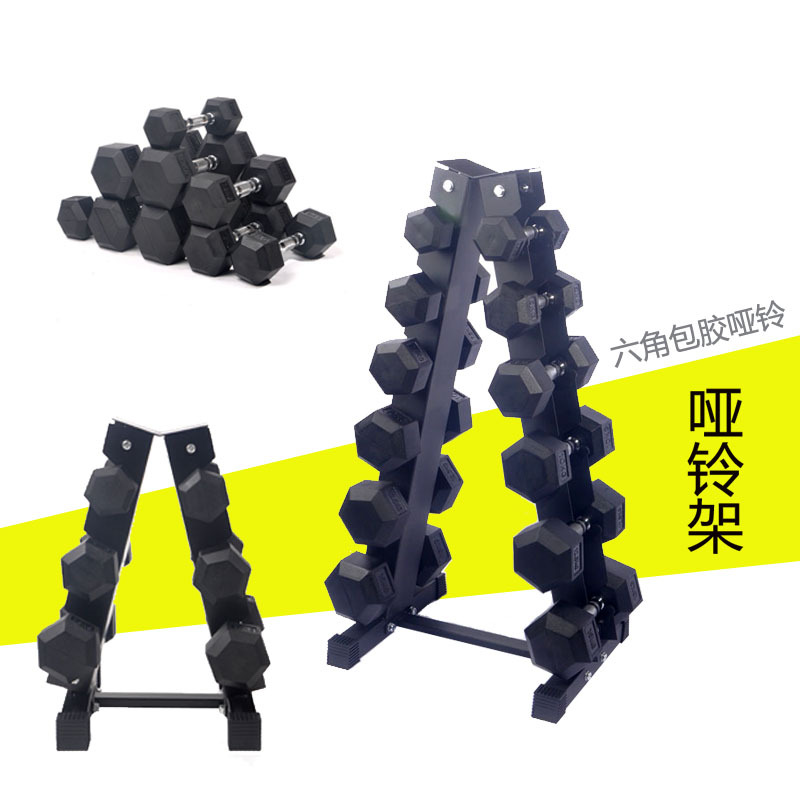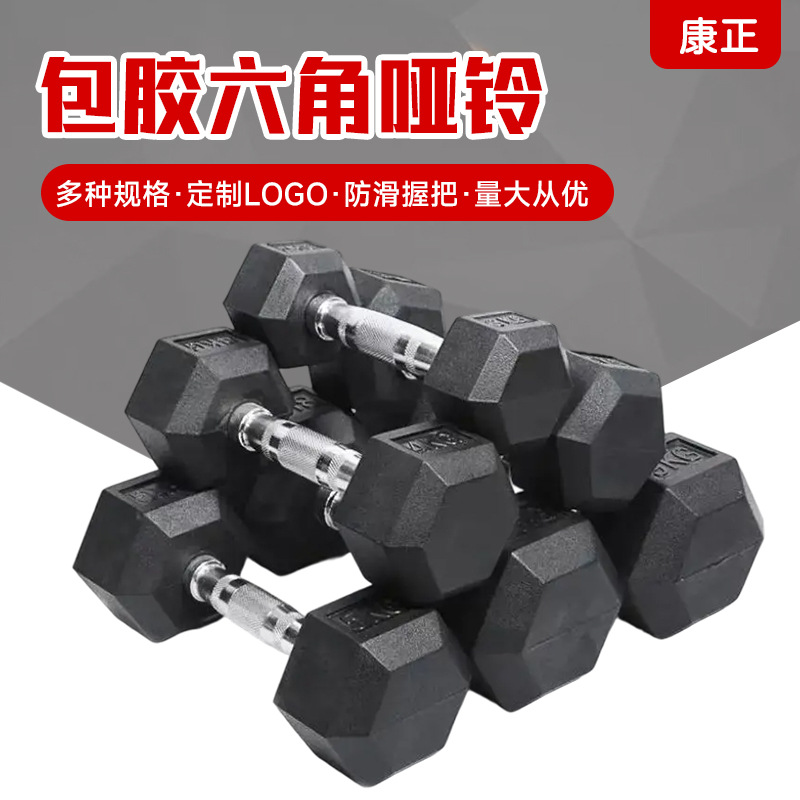 Dumbbell Hexagon Dumbbell Karet Tetap Rumah Tangga Dumbbell Komersial Gym Berlatih Pantat Lengan Kurus Pria Bergelut Hitam