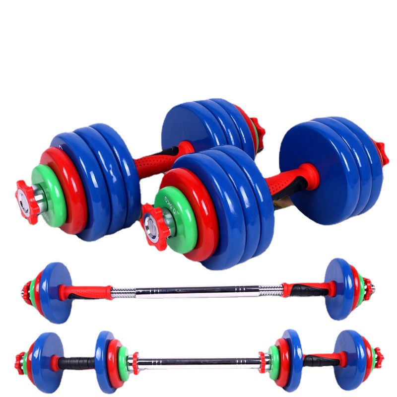 Dumbbell berlapis plastik warna-warni, set barbell besi cor padat untuk kebugaran pria di rumah, peralatan dumbbell yang dapat disesuaikan.