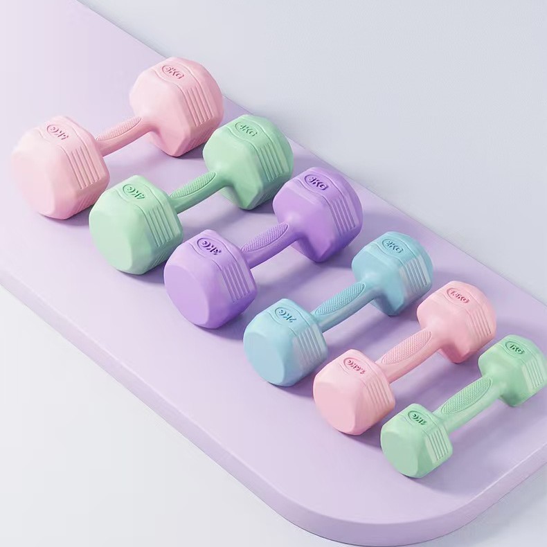 Pasokan langsung dari pabrik dumbbell heksagonal wanita barbel warna aerobik Yoga Fitness plastik dipping dumbbell anak-anak