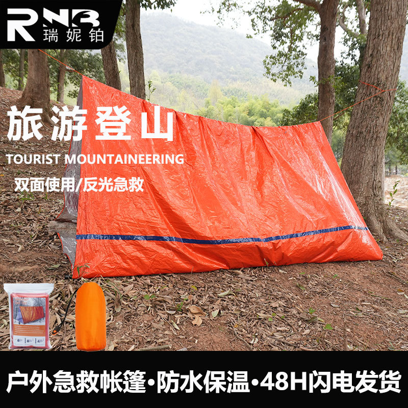Selimut darurat sederhana berkemah tenda segitiga hangat tenda bantuan bencana film aluminium lapisan tunggal portabel kantong tidur sementara luar ruangan