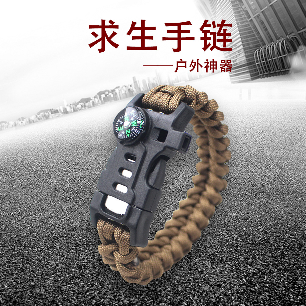 Gelang Kompas multifungsi untuk bertahan hidup berkemah gunung, gelang anyaman tali payung tujuh core