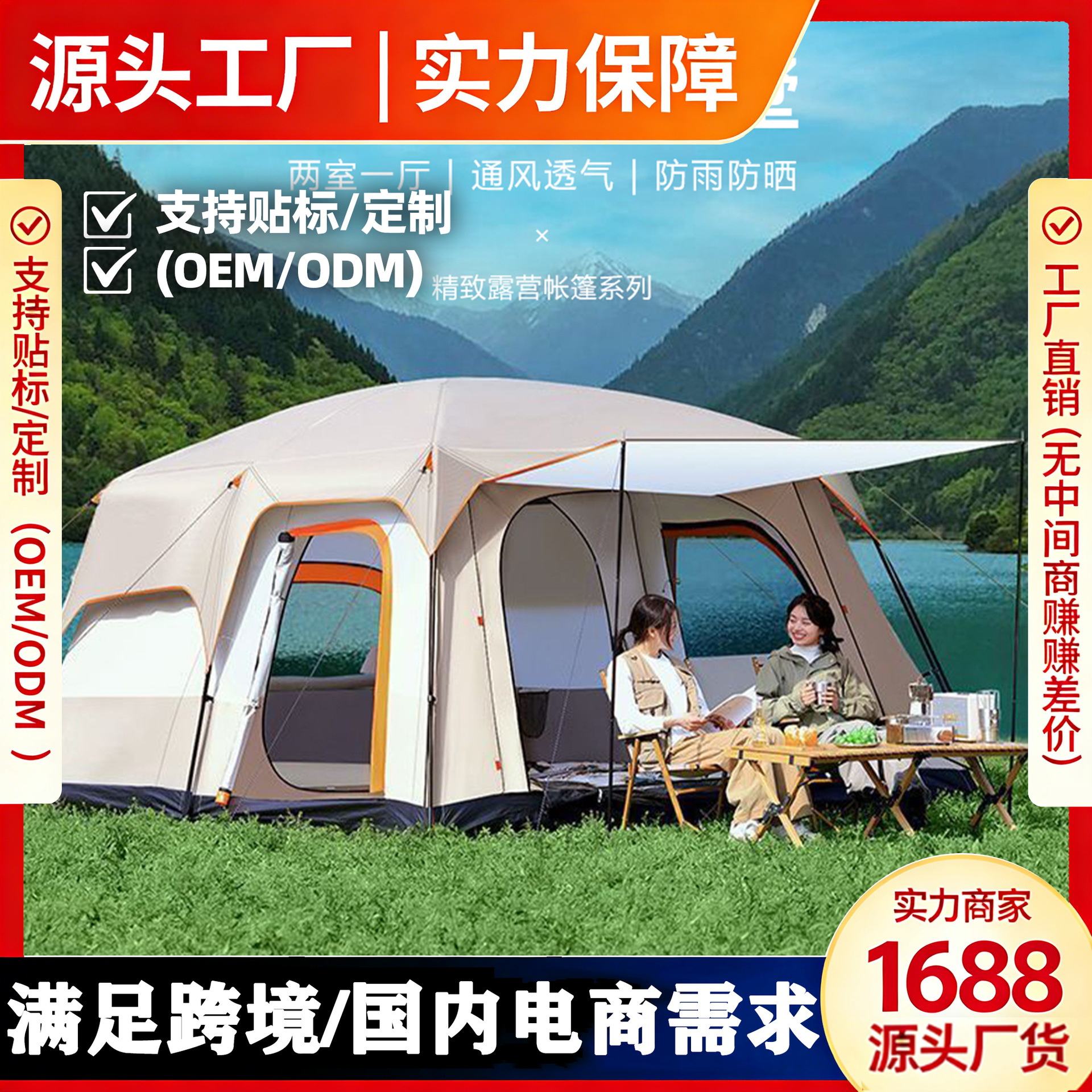096 tenda luar ruangan lengkap dengan dua kamar dan satu ruang tamu, dapat dilipat, portabel, tahan sinar matahari, tahan air, tenda berkemah dropshipping lintas batas