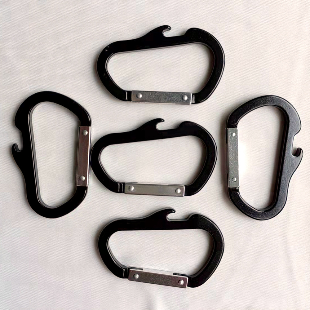 D-type karabiner paduan aluminium multifungsi, pembuka botol gesper botol air mendaki berkemah luar ruangan berbentuk multifungsi
