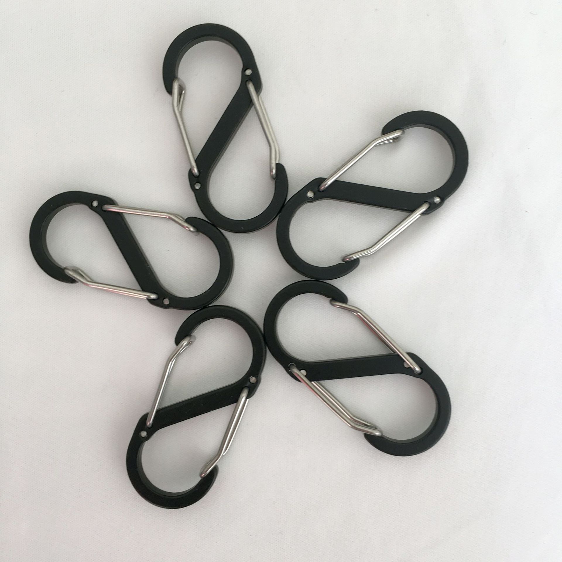 Produsen menyediakan labu karabiner paduan aluminium berbentuk 8 gesper pegas elektroforesis tipe S gesper gantung tali elastis gantungan cepat