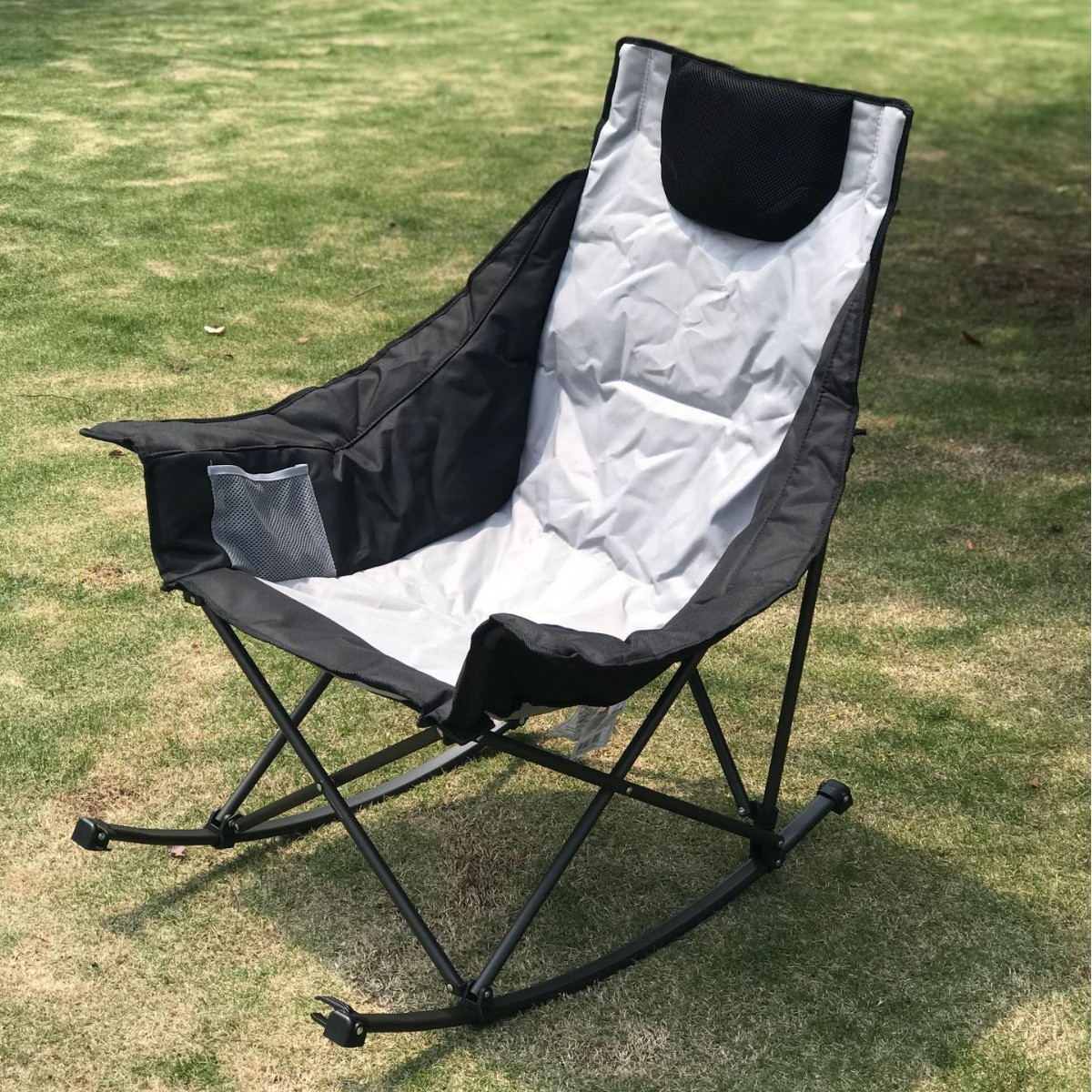 Kursi punggung santai gunung, sandaran tangan besar monokrom memancing, berkemah, ultra ringan portabel lipat