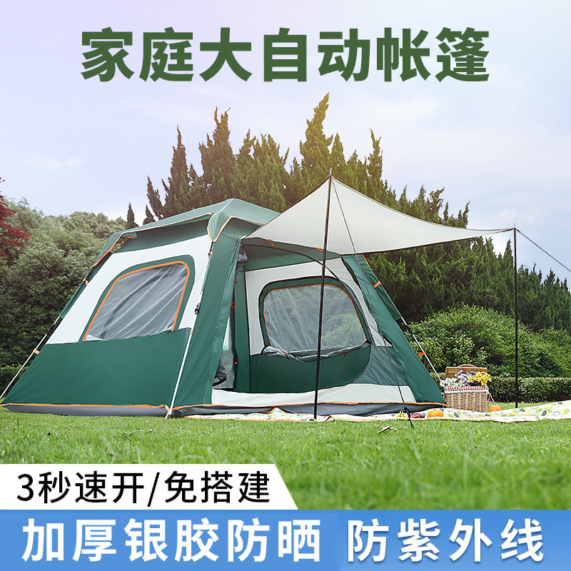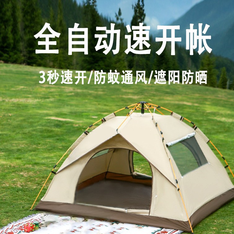 Tenda otomatis luar ruangan berkemah lipat otomatis, 3-4 orang pantai sederhana cepat terbuka produsen Ganda batch