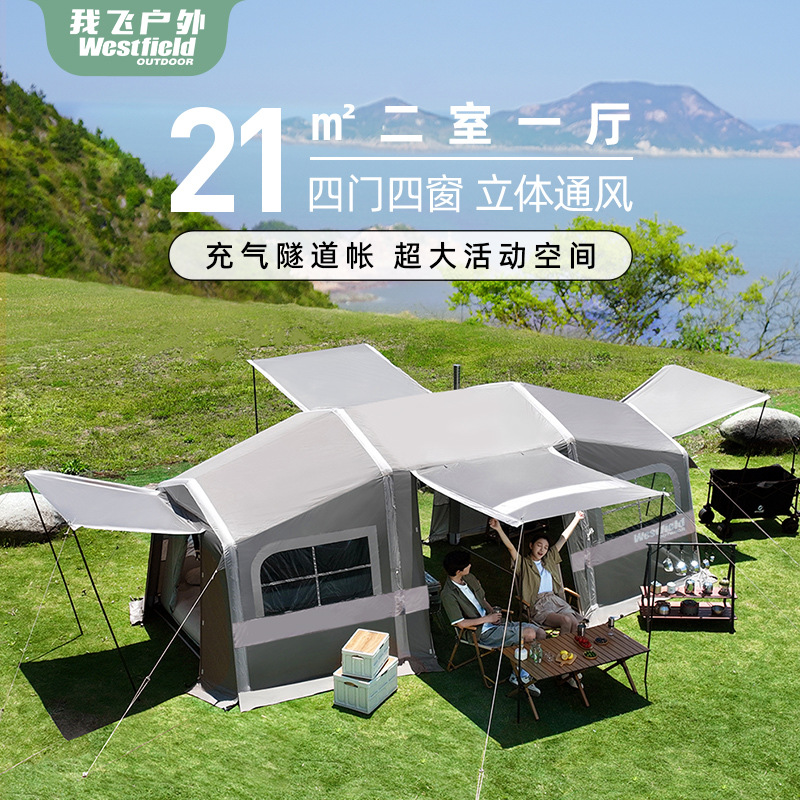 Tenda tiup saya terbang, terowongan rumah fantasi, tenda tiup luar ruangan, peralatan berkemah, dua kamar tidur, satu ruang tamu, tenda anti hujan tebal