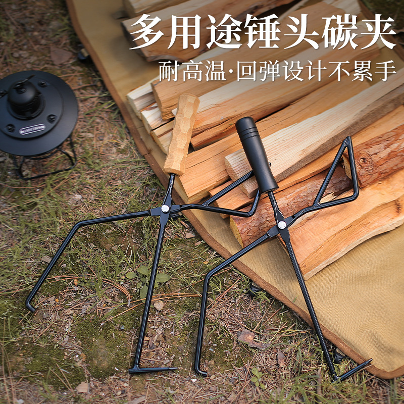 Klip arang klip karbon Musim Semi palu luar ruangan klip arang klip barbekyu Kemah pegangan Beech klip karbon penjepit api grosir