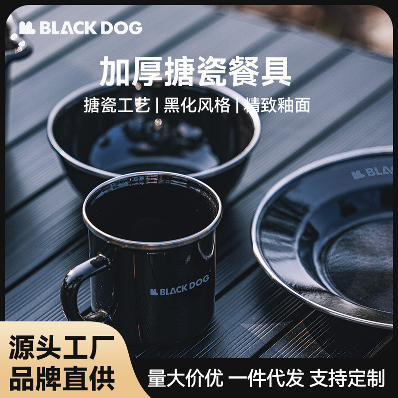 Blackdog Black Dog Peralatan Makan Enamel Luar Ruangan Piring Piring Mangkuk Cangkir Peralatan Makan Barbekyu Luar Ruangan Portabel Peralatan Makan