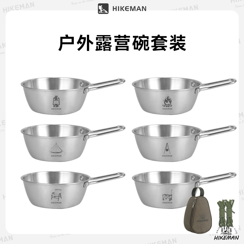 Hikeman Shela Mangkuk 304 Stainless Steel Peralatan Makan Portabel Berkemah Luar Ruangan dengan Mangkuk Anggur Beras Mangkuk Berkemah Piknik Mangkuk