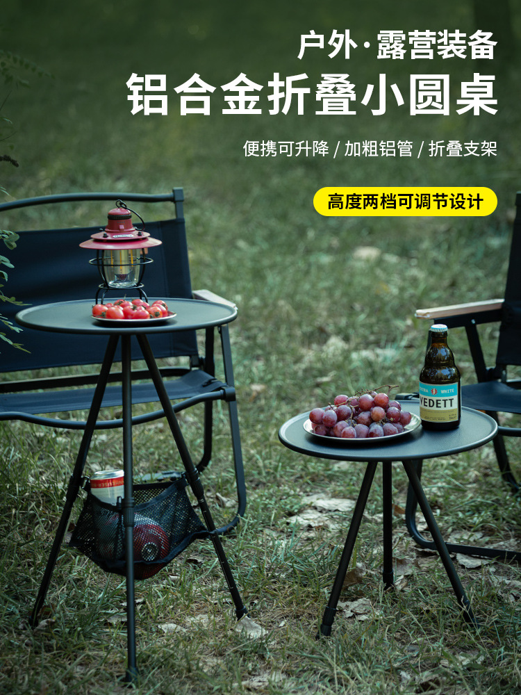 Meja Makan bulat kecil luar ruangan, dudukan lampu meja teh berkemah sendiri sepeda motor dapat disesuaikan lipat paduan aluminium
