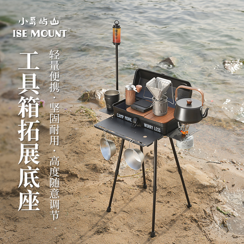 ISE MOUNT Meja Lipat Luar Ruangan Kotak Peralatan Portabel untuk Berkemah dengan Rak Lampu