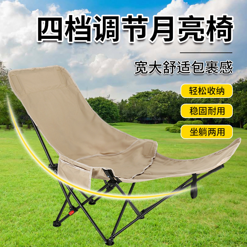 Kursi Bulan Kursi Berkemah dengan Punggung Tinggi Bisa Duduk dan Berbaring Kursi Balkon Kursi Santai Rumah Tangga Disesuaikan Empat Blok Kursi Lipat