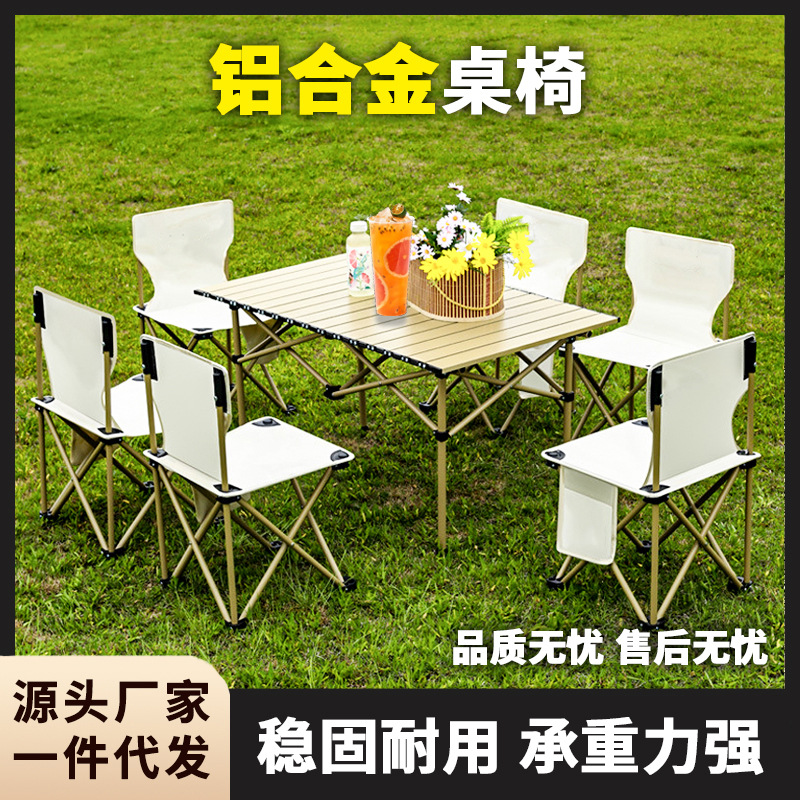 Setelan meja lipat Kemah luar ruangan, peralatan berkendara sendiri, Meja gulung telur aluminium Aloi
