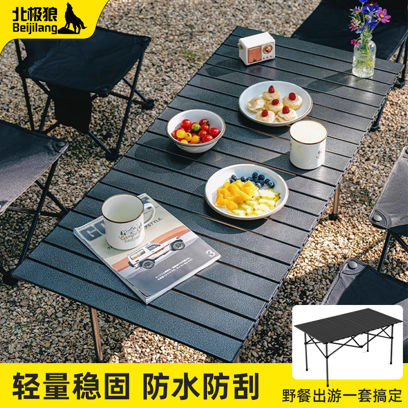 Meja gulung telur aluminium luar ruangan meja piknik meja berkemah liar kursi lipat portabel peralatan perlengkapan