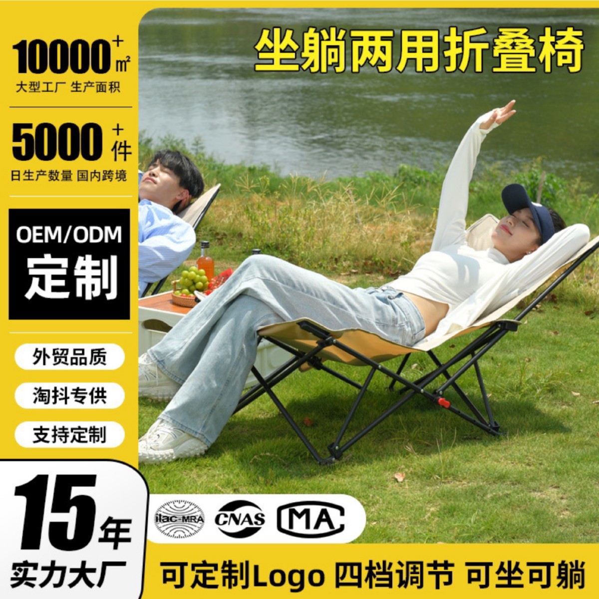 Kursi Lipat Luar Ruangan Kursi Santai Pantai Portabel Tiga Gigi Kursi Santai Berkemah Liar Berbaring Memancing
