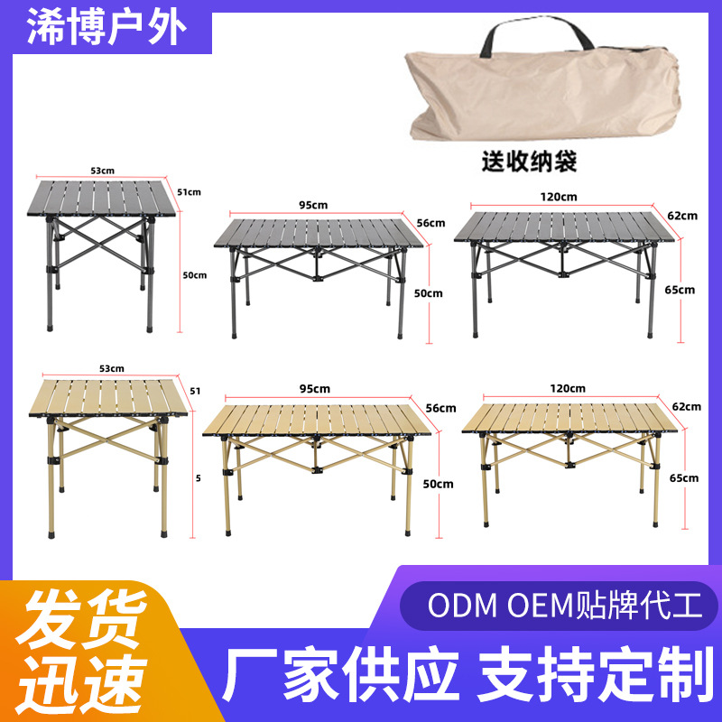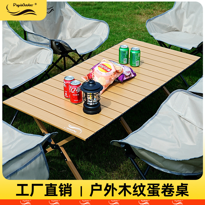 Dingxin meja gulung telur portabel, meja piknik perjalanan barbekyu nyaman, Meja Kemah baja karbon luar ruangan