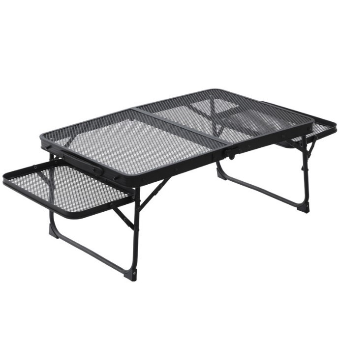 Meja lipat jala aluminium luar ruangan, Meja perjalanan berkemah lapisan ganda dengan meja samping meja barbekyu portabel