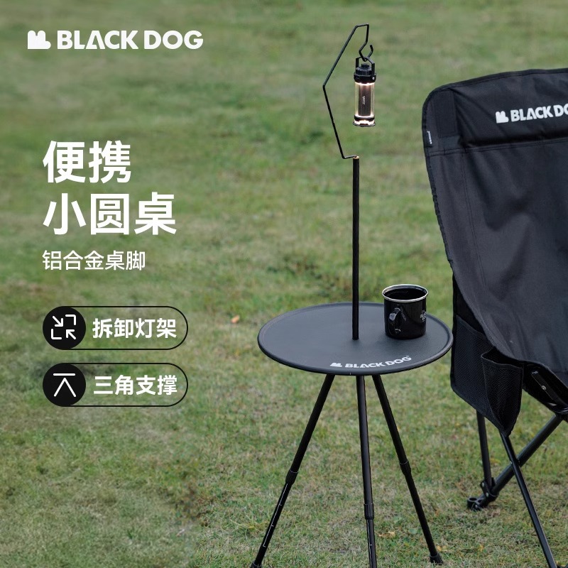 Blackdog meja teh bulat kecil portabel, anjing hitam luar ruangan meja berkemah samping portabel meja berkemah ringan aluminium Aloi santai lampu meja teh pemegang