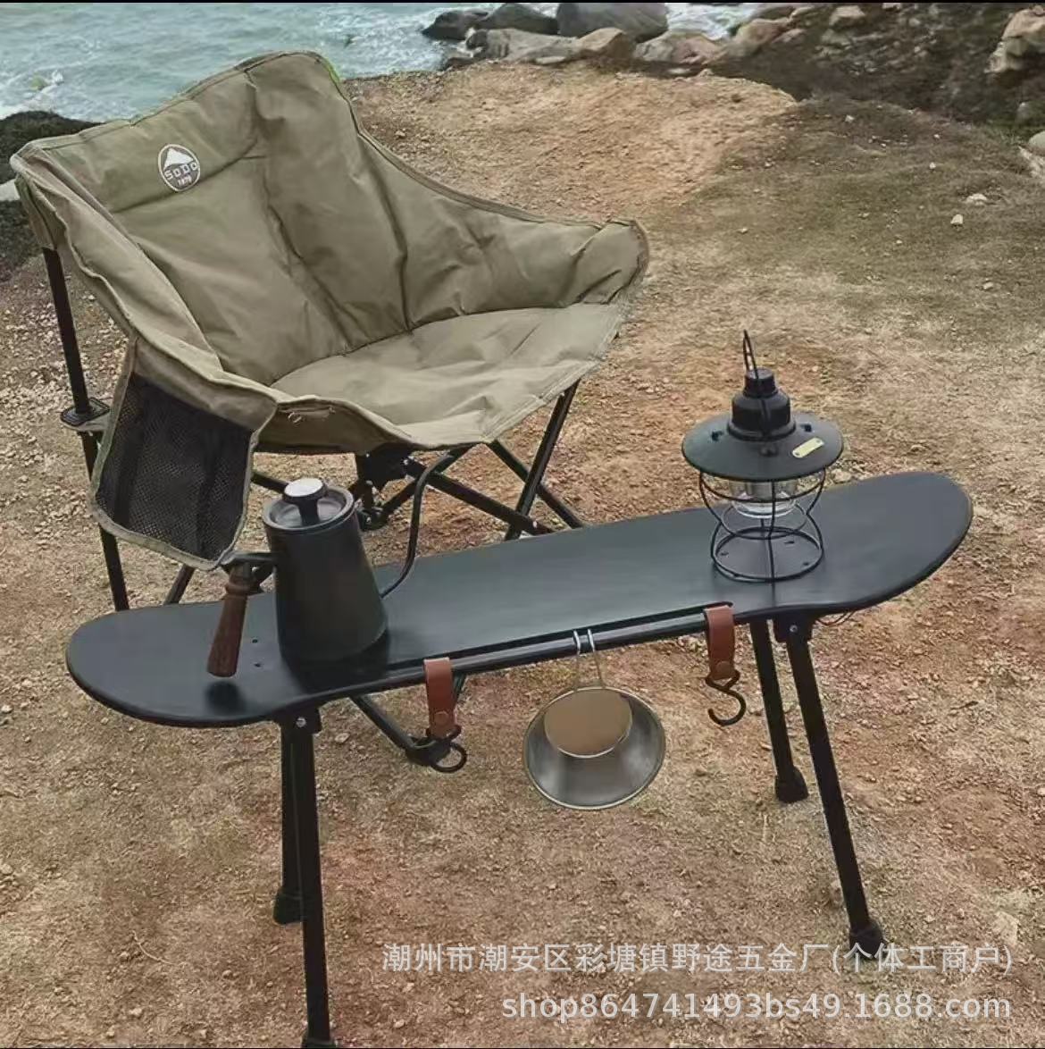 Piknik Berkemah Sandaran Kursi Peralatan Stand Bangku Meja Gulung Telur Lipat Luar Ruangan Set Bulan Portabel