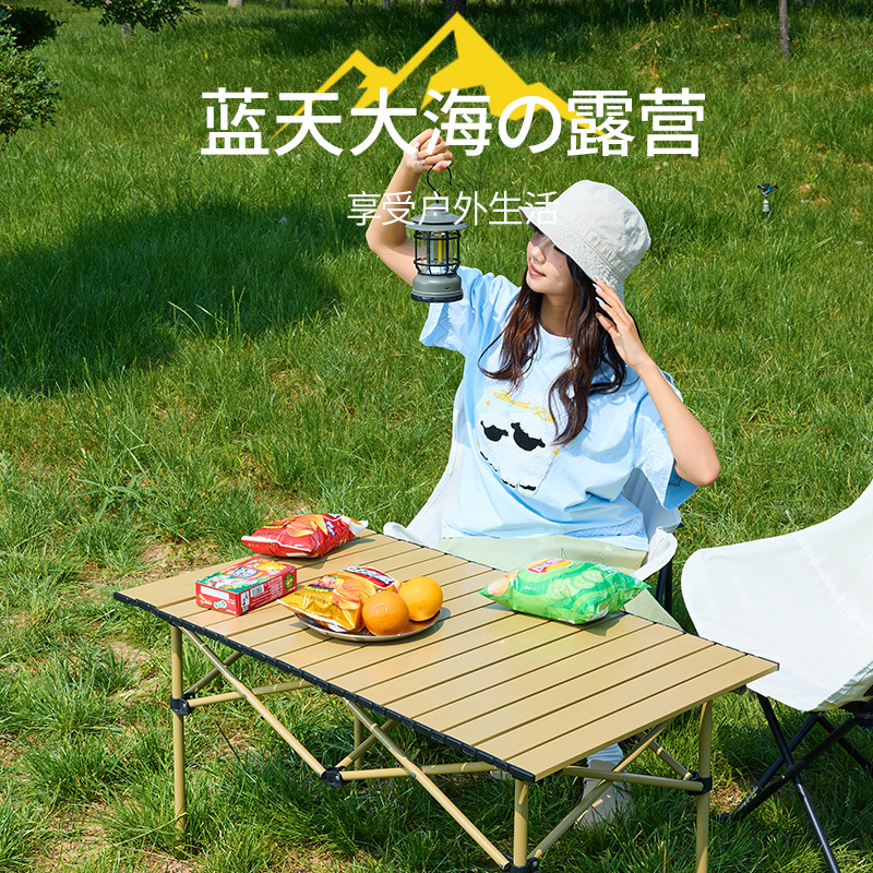 Meja lipat luar ruangan dan kursi portabel, Meja gulung telur piknik berkemah mobil perjalanan meja paduan aluminium