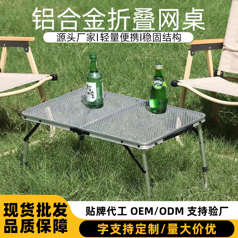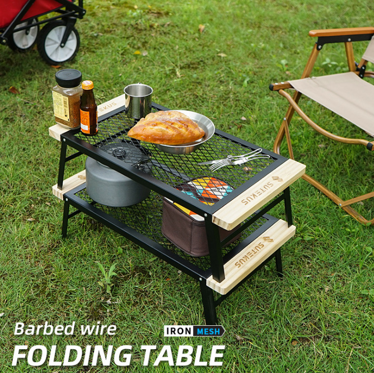 Meja jala besi multifungsi, rak penyimpanan mini lipat portabel, meja berkemah, kustomisasi meja barbekyu paduan aluminium luar ruangan