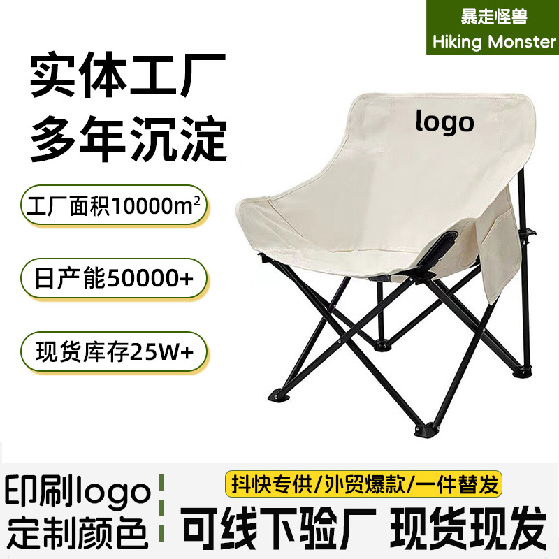 [Monster Berjalan] Berkemah Luar Ruangan Kursi Bulan Kursi Lipat Santai Luar Ruangan Kursi Portabel Mudah Dapat Disesuaikan LOGO