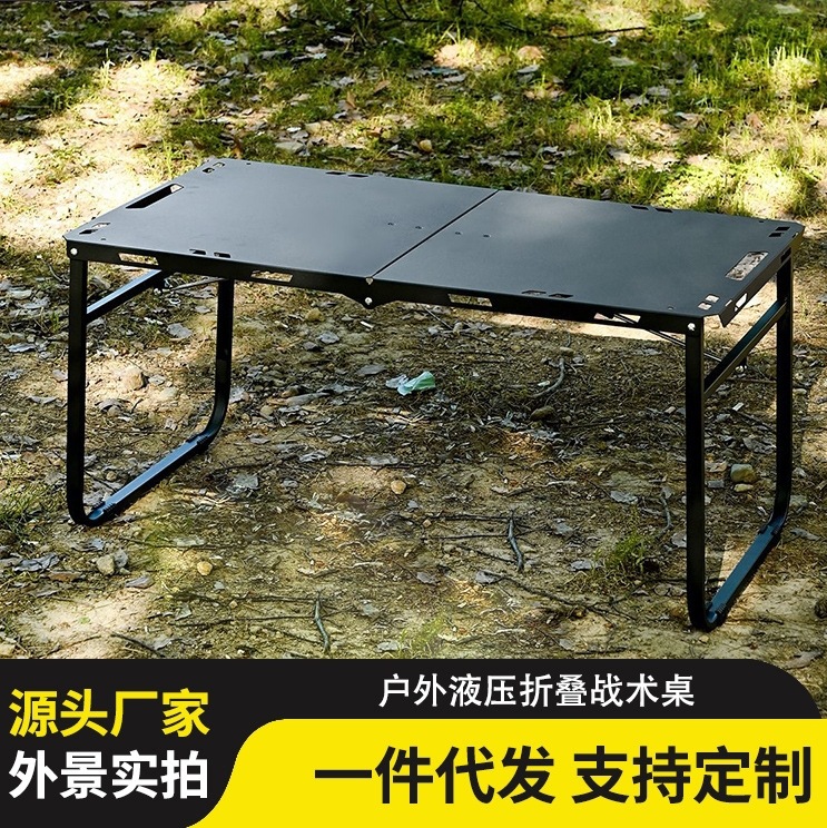 Outdoor Berkemah untuk Berpiknik Baja Karbon Meja Makan Liar Ringan Portabel Meja Hidrolik untuk Berkemah Meja Taktis Lipat Produsen Grosir